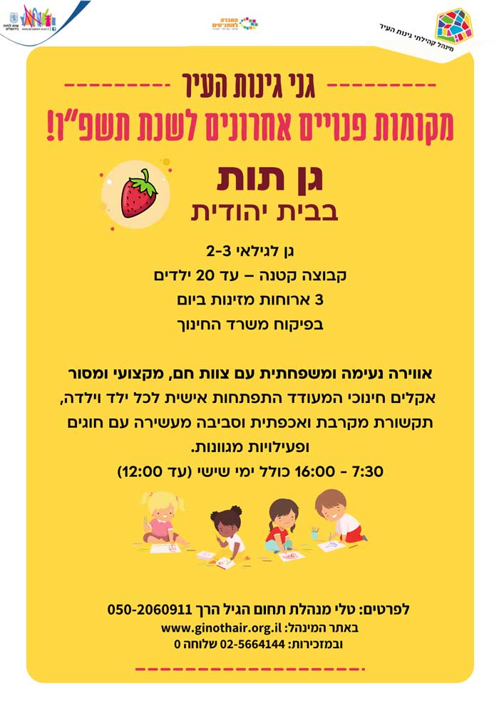 הצוות מלווה ומפוקח ע"י מינהל קהילתי גינות העיר – המרכז לגיל הרך.