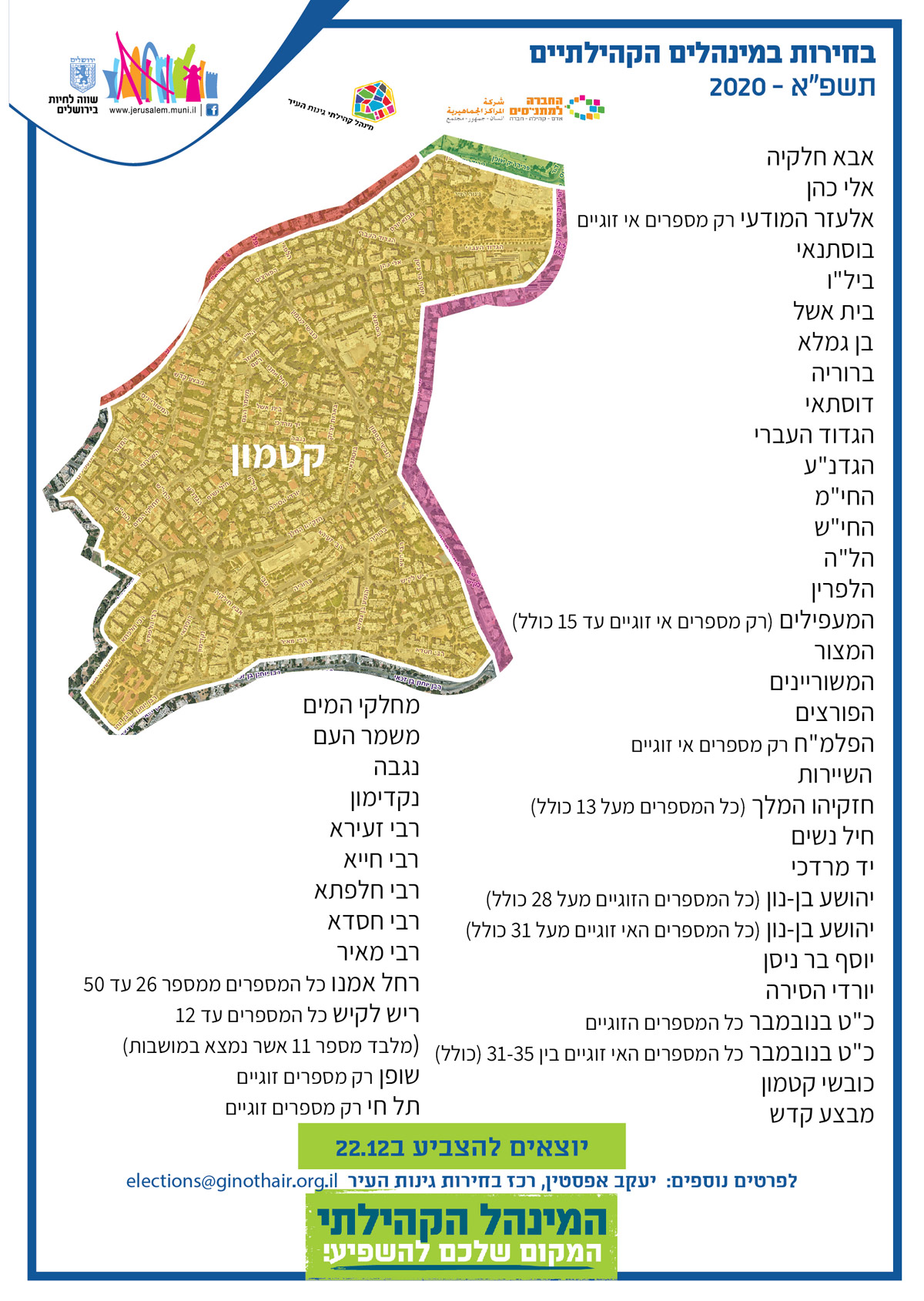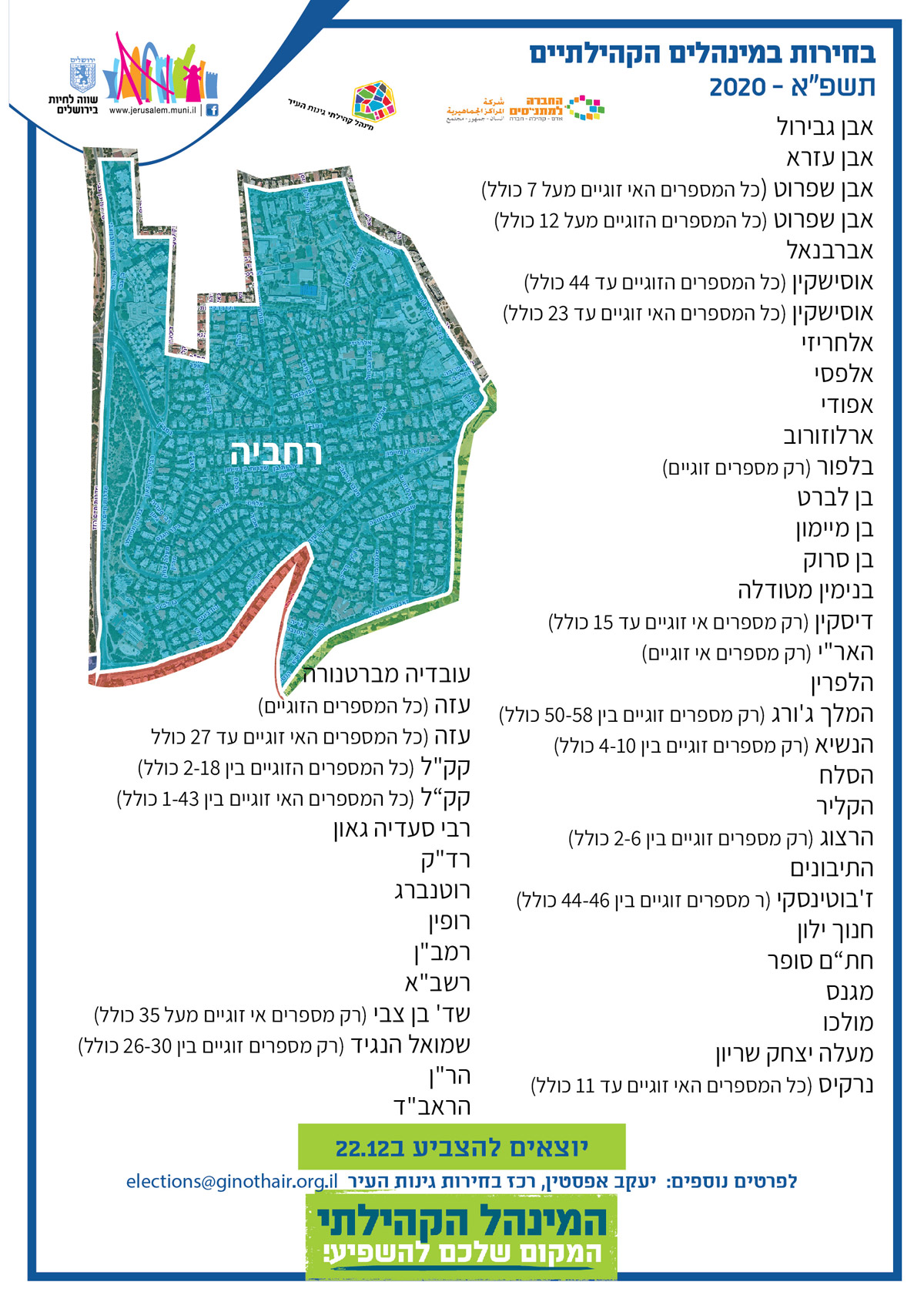 להלן חלוקת איזורי הבחירה לפי רחובות: